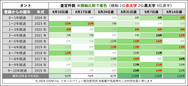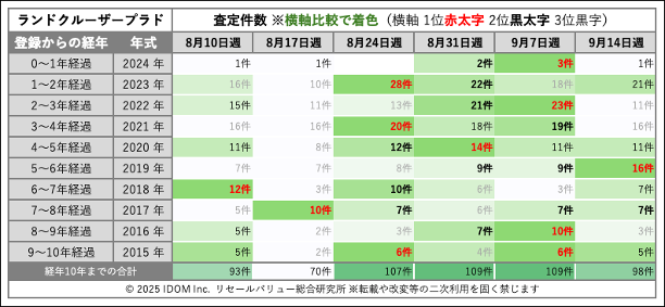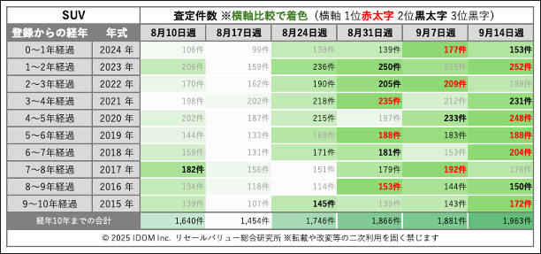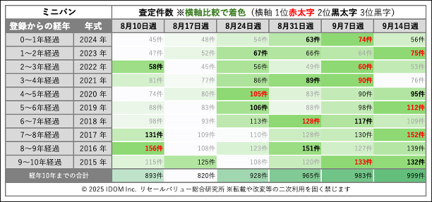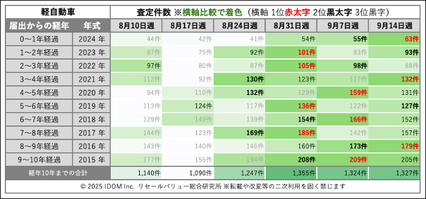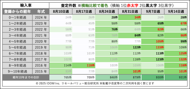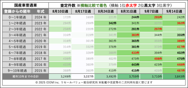 2025年第38週(9月14日週)の査定件数が多い年式別の上位200車種