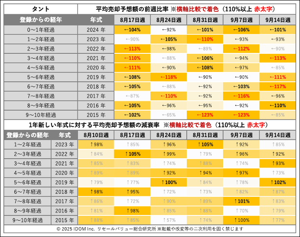 2025年第38週(9月14日週)の中古車買取査定件数と平均売却予想額