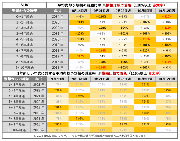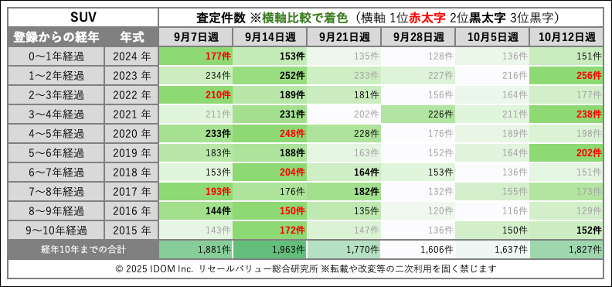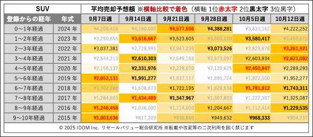 この査定件数とリセールバリューの上昇傾向から、SUV市場は依然として活発な需要に支えられている。