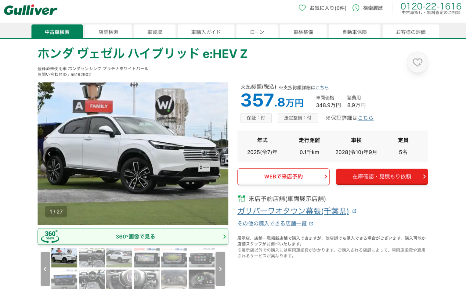 なかでも、新車価格がジムニーノマドよりも高い「ヴェゼル ハイブリッド」の在庫が豊富なのが印象的で、車種へのこだわりがなければ購入予算を基準に他の選択肢にも目を向けてみることも大切です。
