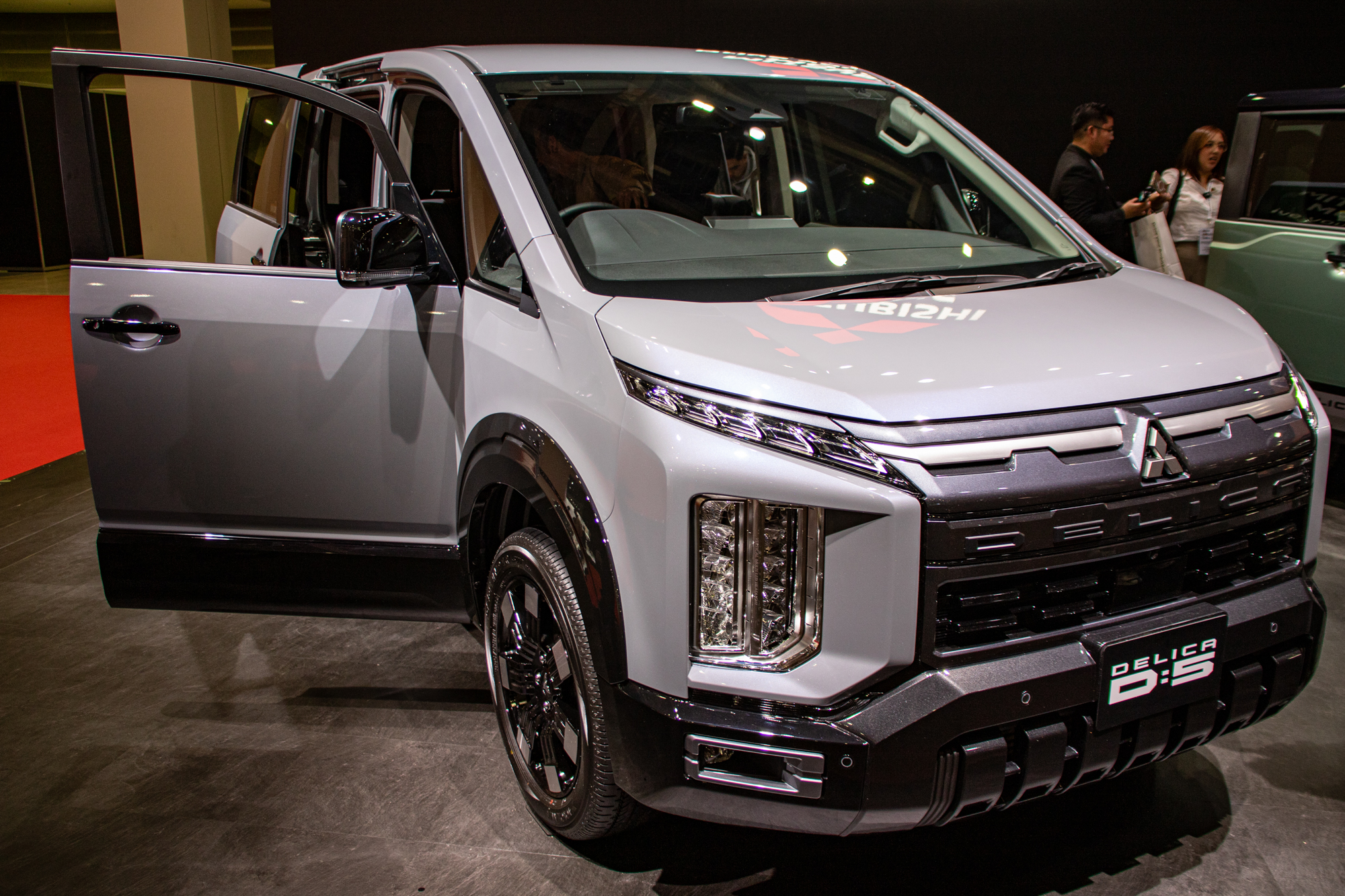 三菱自動車のブースからは、今年の冬に発売を予定している人気のアウトドア系ミニバン「デリカ D:5」の一部改良モデル。以前から人気の高い力強いスタイリングをさらにブラッシュアップしているほか、走行性能な内装装備も拡充しています。