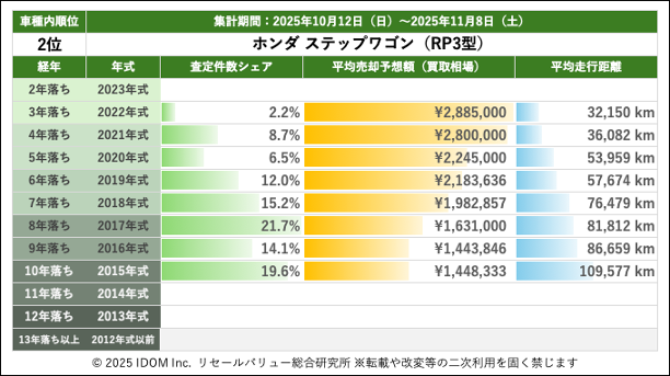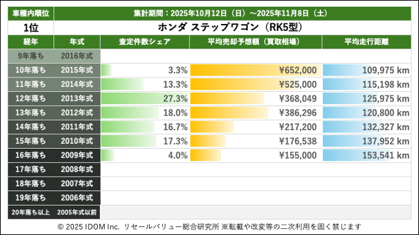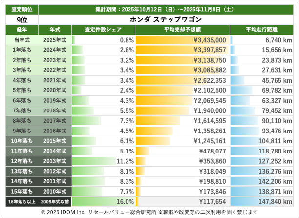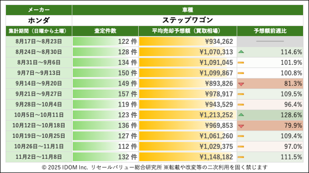 【2025年11月8日(土)版】ホンダ ステップワゴンの売却予想額(買取相場)速報