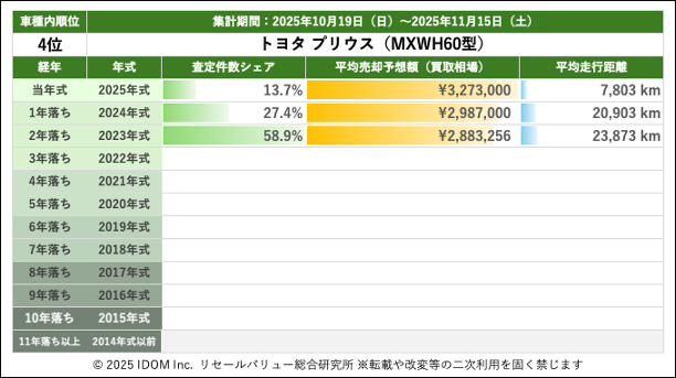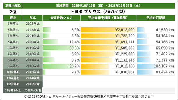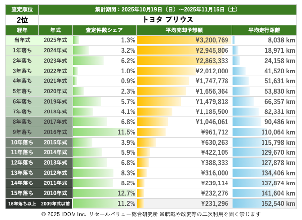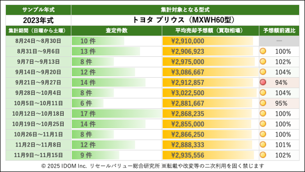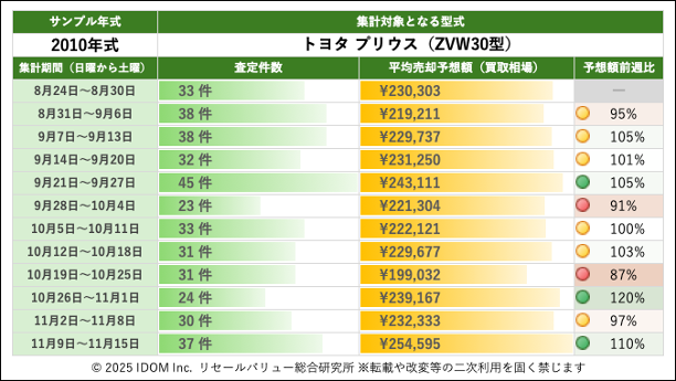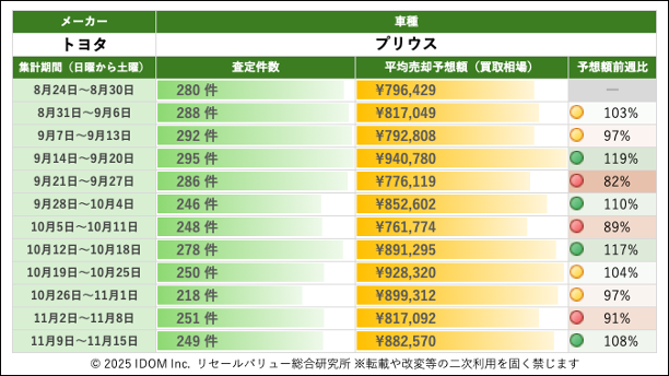 【2025年11月15日(土)版】トヨタ プリウスの売却予想額(買取相場)速報