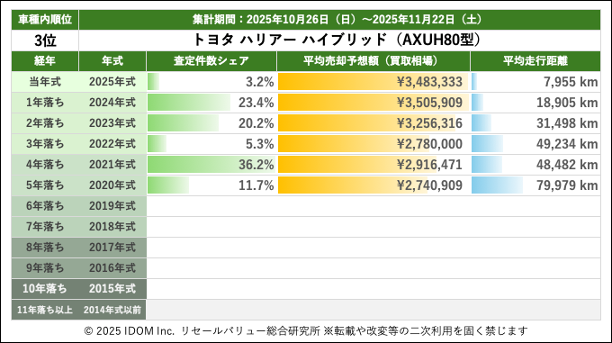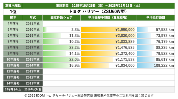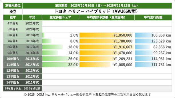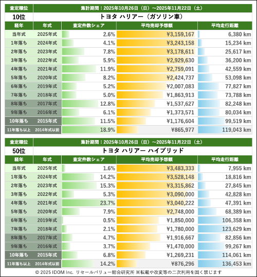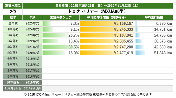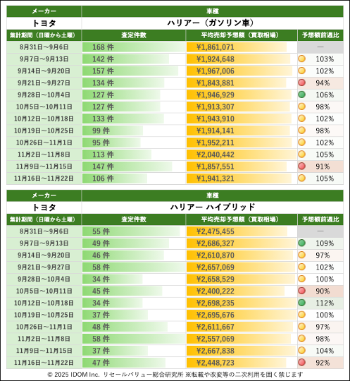 【2025年11月22日(土)版】トヨタ ハリアーの売却予想額(買取相場)速報