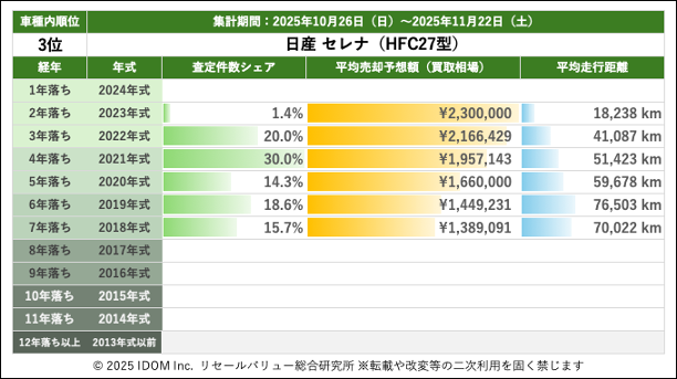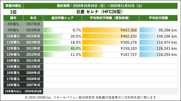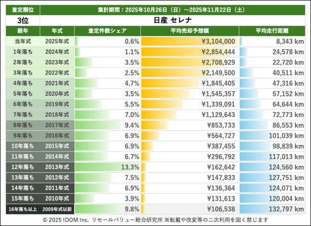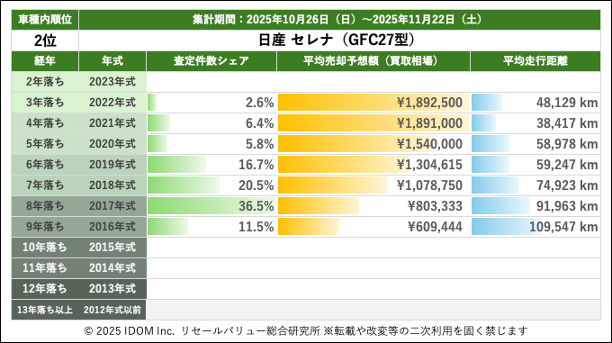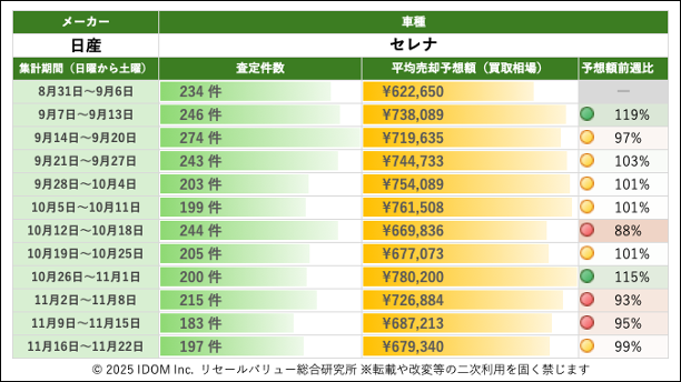 【2025年11月22日(土)版】日産 セレナの売却予想額(買取相場)速報