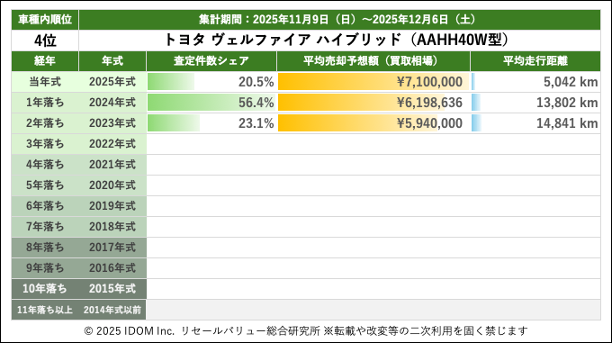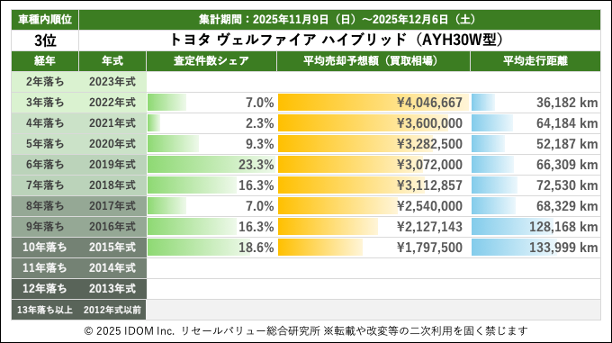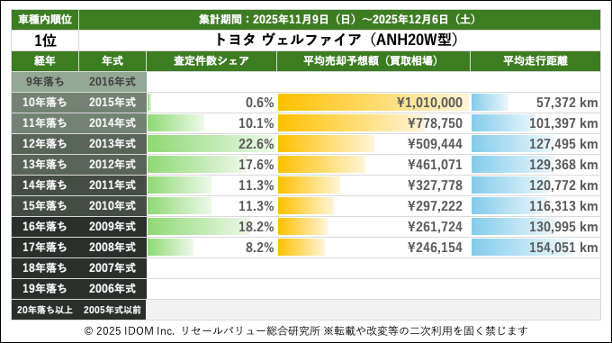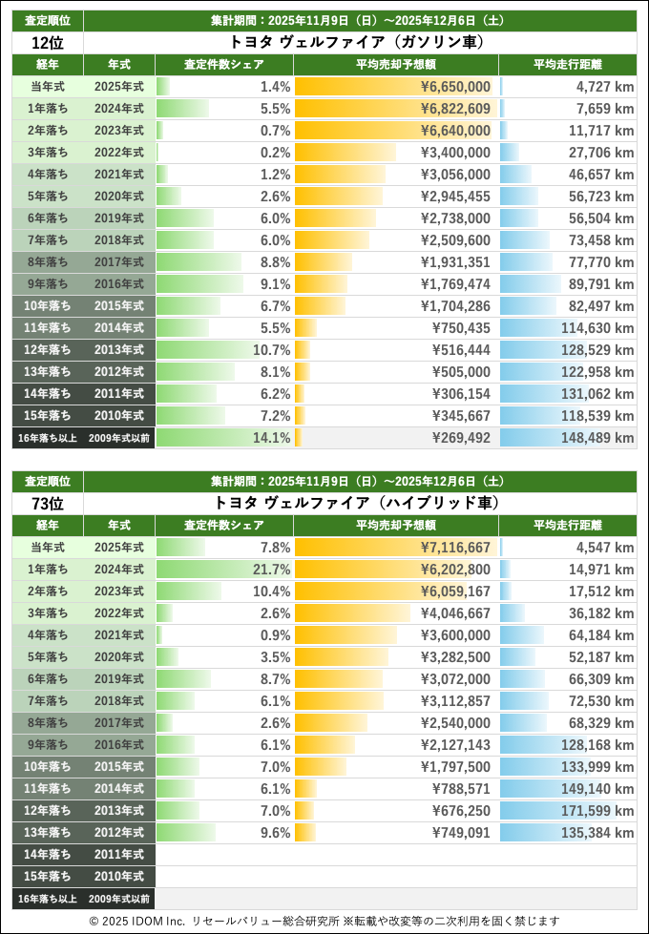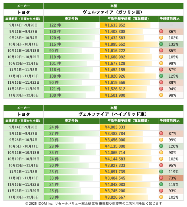 【2025年12月6日(土)版】トヨタ ヴェルファイアの売却予想額(買取相場)速報