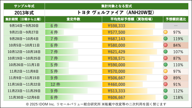 トヨタ ヴェルファイアの買取相場:過去12週間の推移