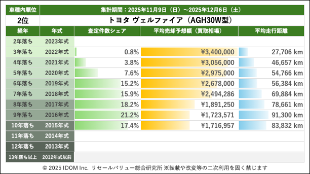| 2位 | トヨタ ヴェルファイア(AGH30W型) | |||