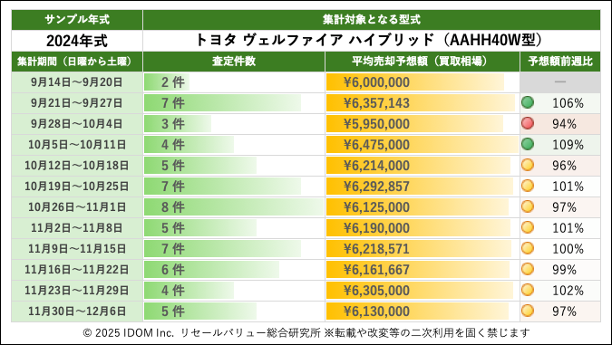トヨタ ヴェルファイア AAHH40W型で査定件数最多の2024年式買取相場:過去12週間の推移
