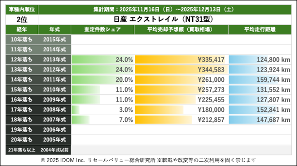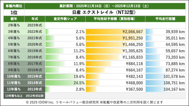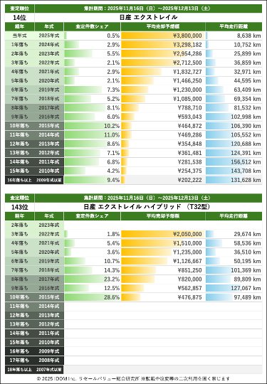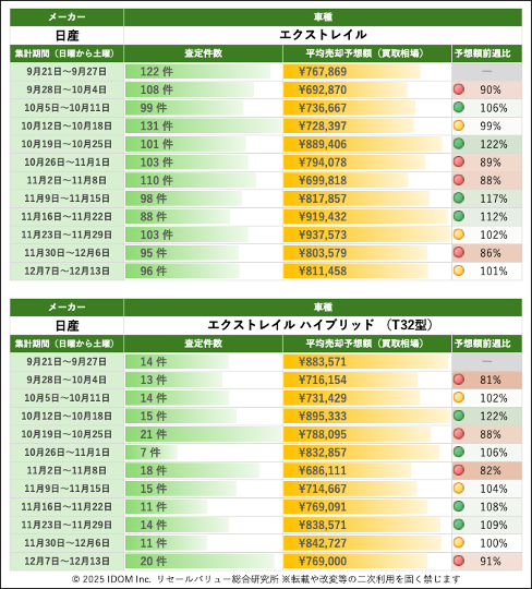 【2025年12月13日(土)版】日産 エクストレイルの売却予想額(買取相場)速報