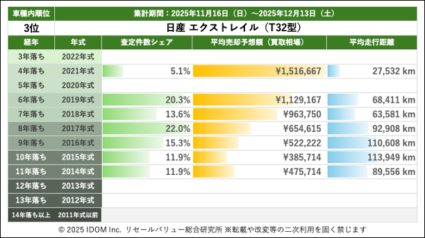 | 3位 | 日産 エクストレイル(T32型) | |||