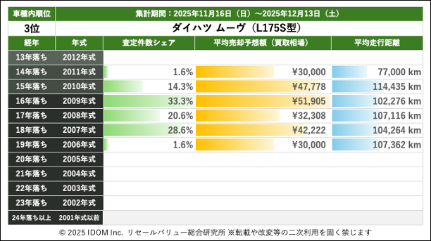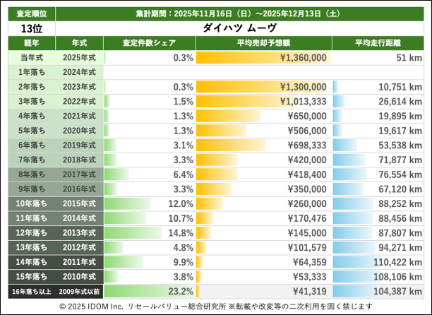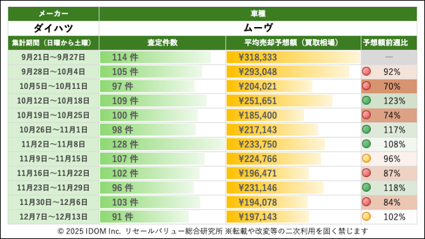 【2025年12月13日(土)版】ダイハツ ムーヴの売却予想額(買取相場)速報