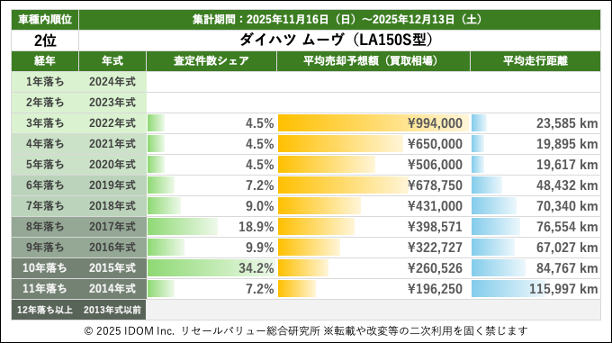 | 2位 | ダイハツ ムーヴ(LA150S型) | |||