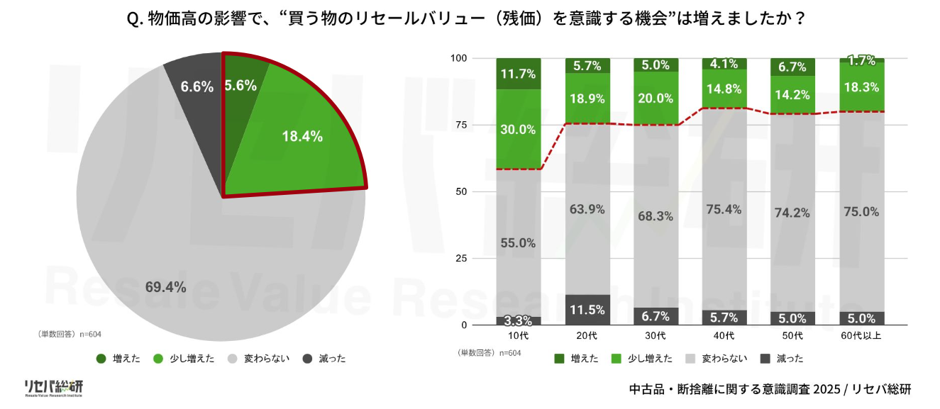 今年は日本漢字能力検定協会が発表する「今年の漢字」の3位に「高」がランクインするなど、物価高騰による生活用品の値上がりが深刻となりましたが、消費者は新品よりもコスパよく商品が手に入れられる中古品に対して、どのように向き合っているのでしょうか?また一方で、節目となる時期に不要なものをまとめて処分する“断捨離”をして身の回りのモノや出費を整理することに対して、消費者はどのような意識を持っているのでしょうか。リセバ総研では、全国の男女604人を対象に「中古品・断捨離に関する意 識調査」を実施しました。