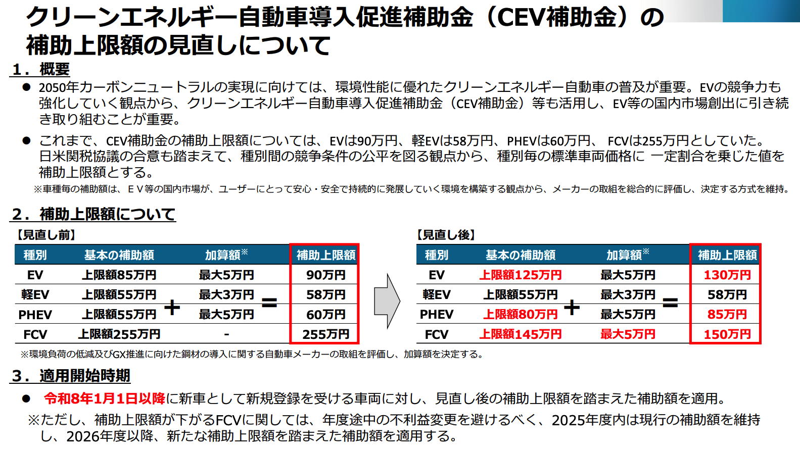 <重要>令和6年度補正 CEV 補助金(車両) 令和8年1月1日以降登録(届出)分の補助額について