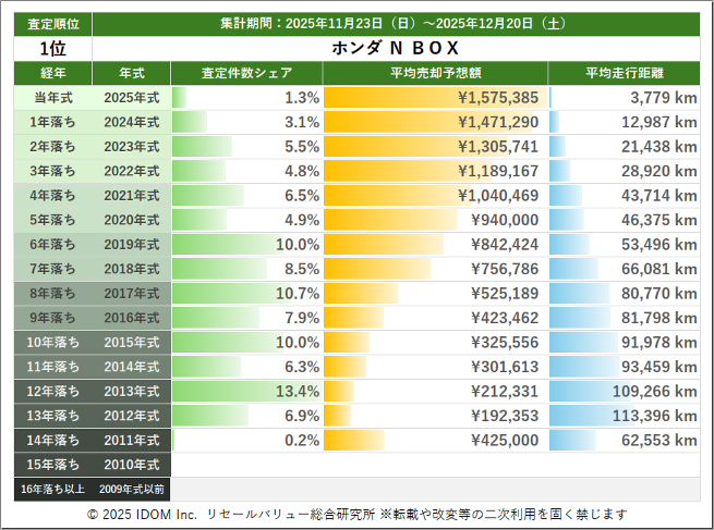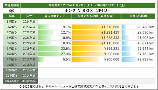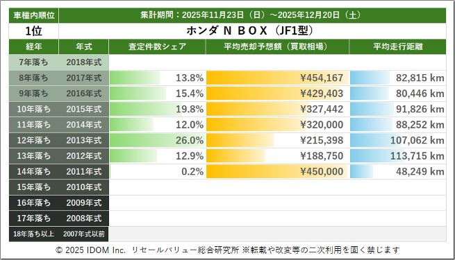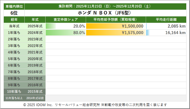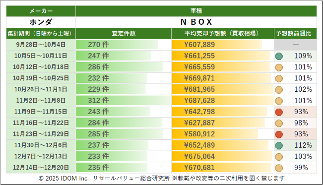 【2025年12月20日(土)版】ホンダ N-BOXの売却予想額(買取相場)速報