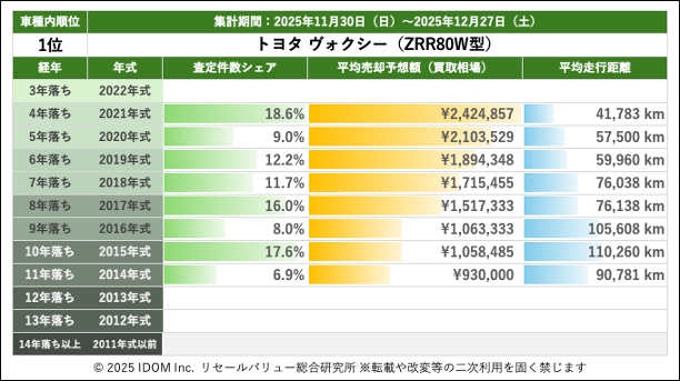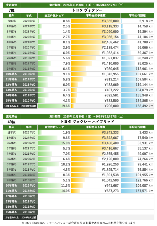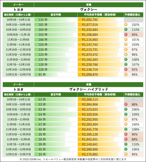 【2025年12月27日(土)版】トヨタ ヴォクシーの売却予想額(買取相場)速報