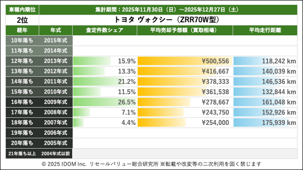 (2)トヨタ ヴォクシー 70系 ZRR70W型の買取相場