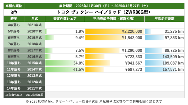 | 3位 | トヨタ ヴォクシー ハイブリッド(ZWR80G型) | |||