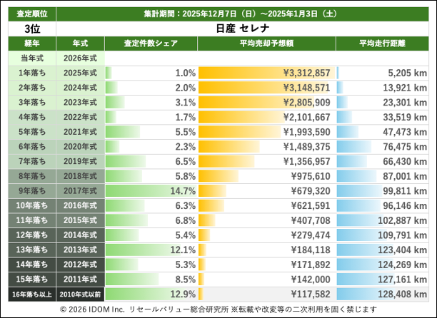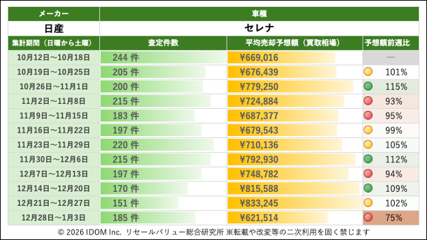 【2026年1月3日(土)版】日産 セレナの売却予想額(買取相場)速報