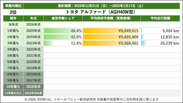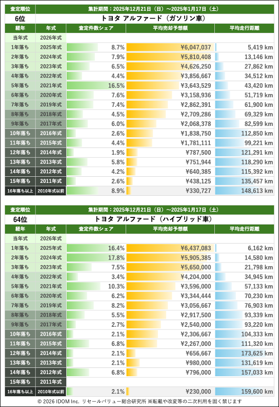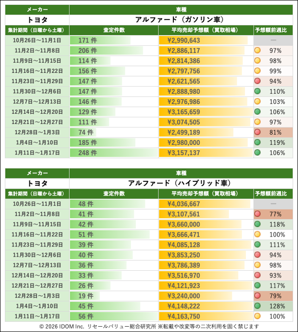 【2026年1月17日(土)版】トヨタ アルファードの売却予想額(買取相場)速報