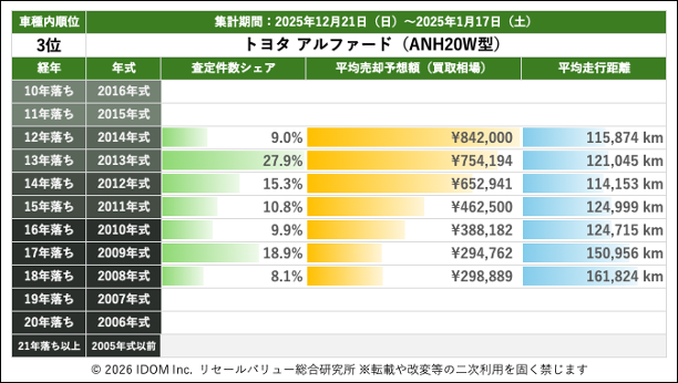 | 3位 | トヨタ アルファード(ANH20W型) | |||