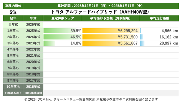 | 5位 | トヨタ アルファードハイブリッド(AAHH40W型) | |||