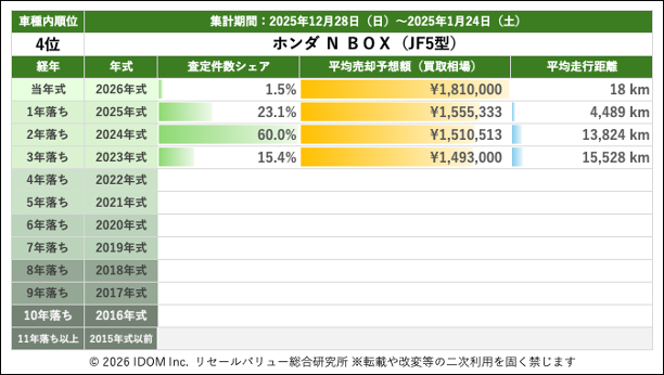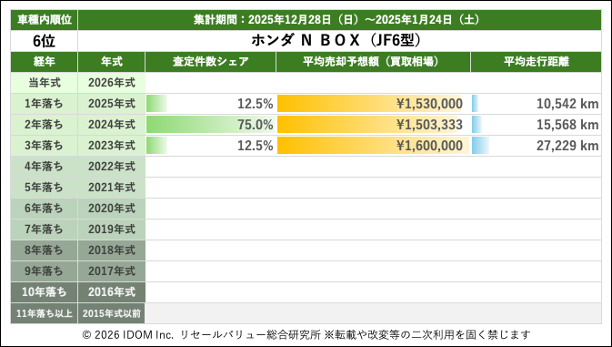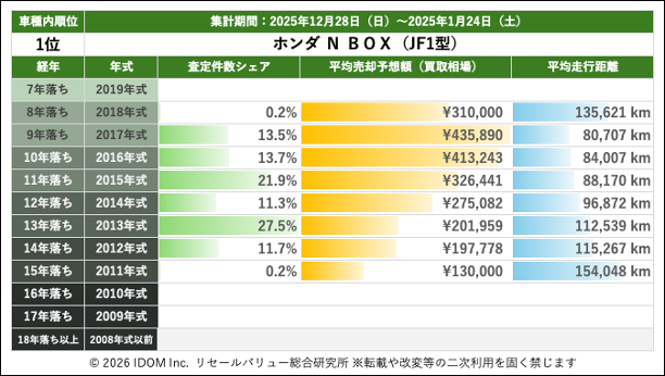 【2026年1月24日(土)版】ホンダ N-BOXの売却予想額(買取相場)速報