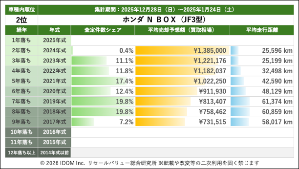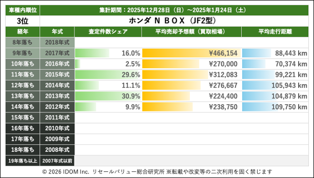 2代目 ホンダ N-BOX JF3型の買取相場