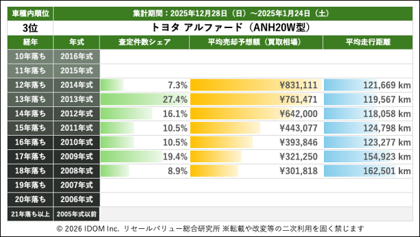 | 3位 | トヨタ アルファード(ANH20W型) | |||