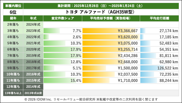 | 6位 | トヨタ アルファード(AGH35W型) | |||