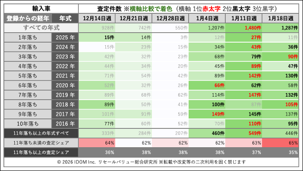 | 2026年1月18日(日)〜2026年1月24日(土)すべての査定 | 11,025 件 | |||