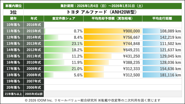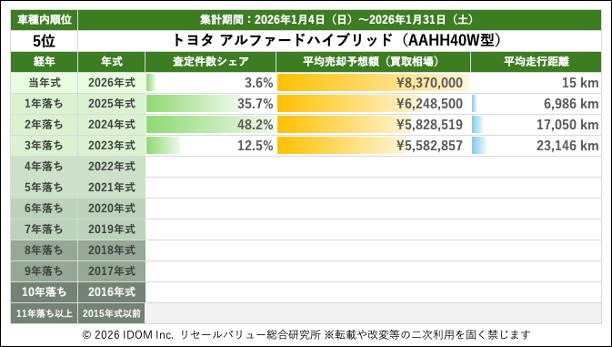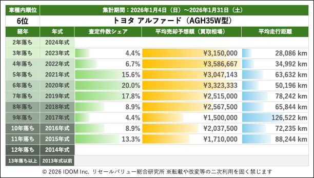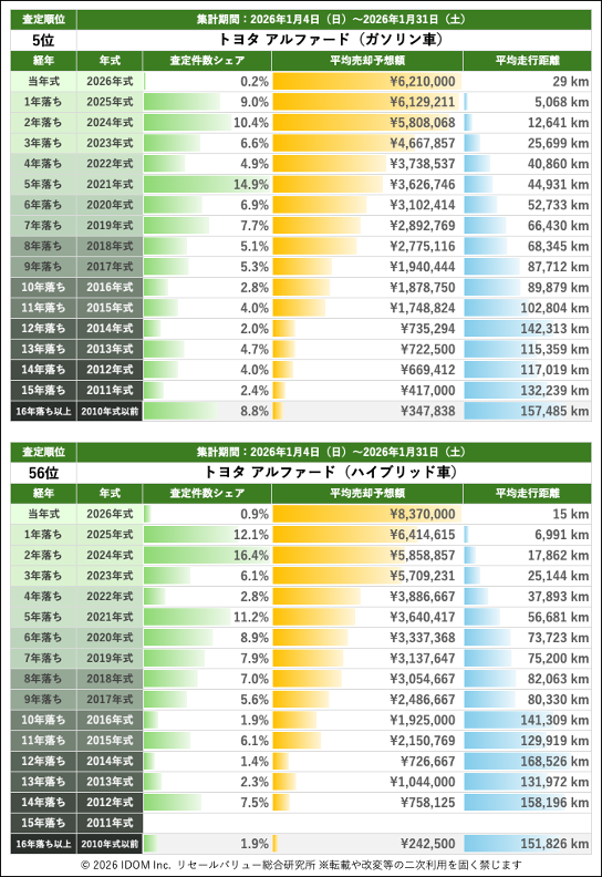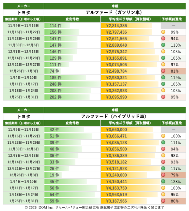 【2026年1月31日(土)版】トヨタ アルファードの売却予想額(買取相場)リセールバリュー速報