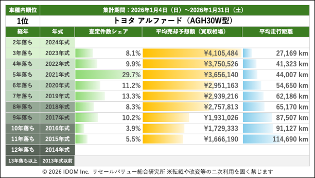 | 1位 | トヨタ アルファード(AGH30W型) | |||