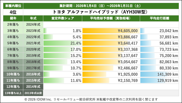 | 4位 | トヨタ アルファードハイブリッド(AYH30W型) | |||