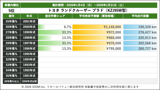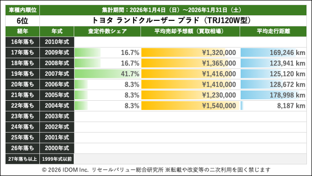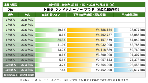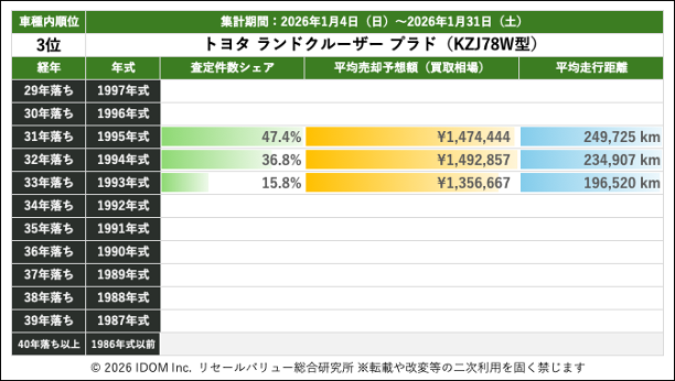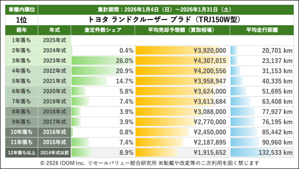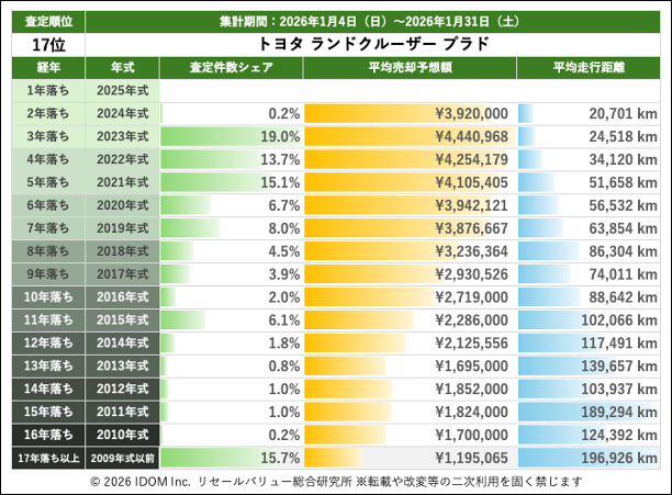 【2026年1月31日(土)版】ランドクルーザープラドの売却予想額(買取相場)リセールバリュー速報