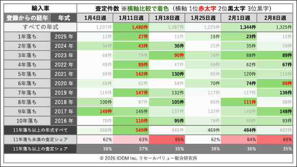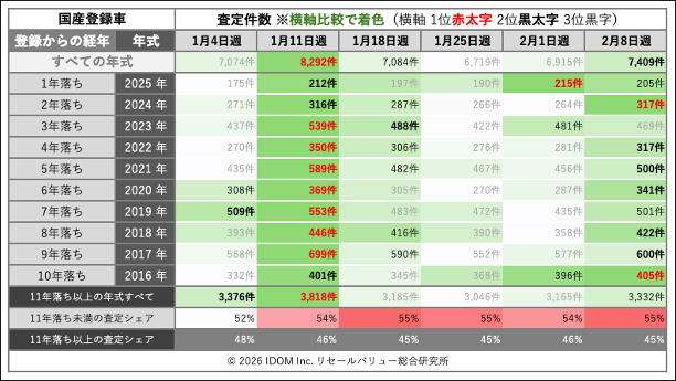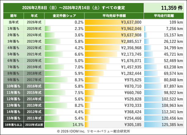 | 2026年2月8日(日)〜2026年2月14日(土)すべての査定 | 11,359 件 | |||