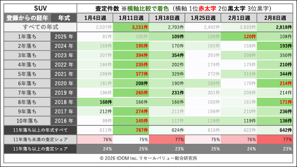 SUVの中古車買取査定件数推移