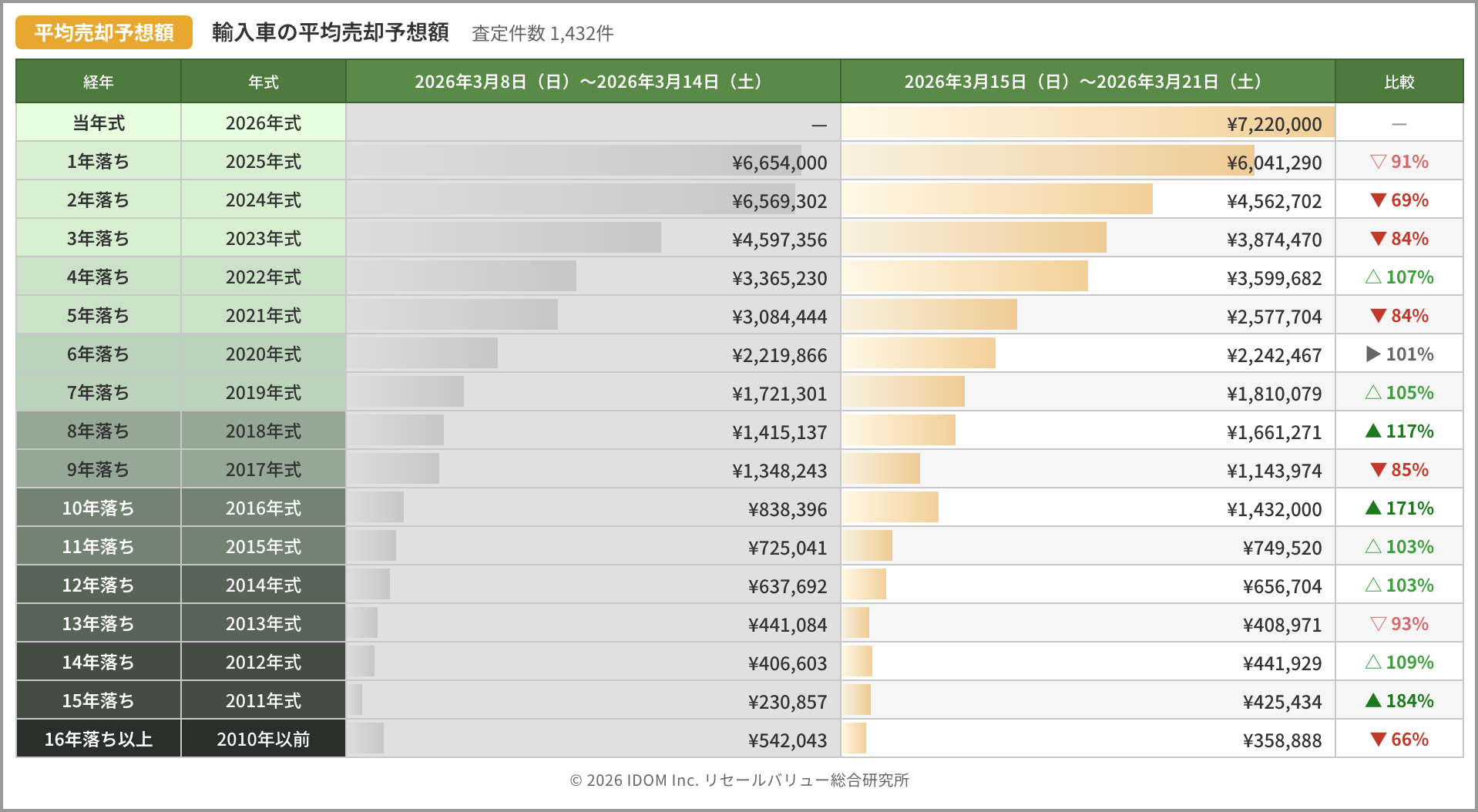 | 輸入車の平均売却予想額 | 1,432 件 | |||