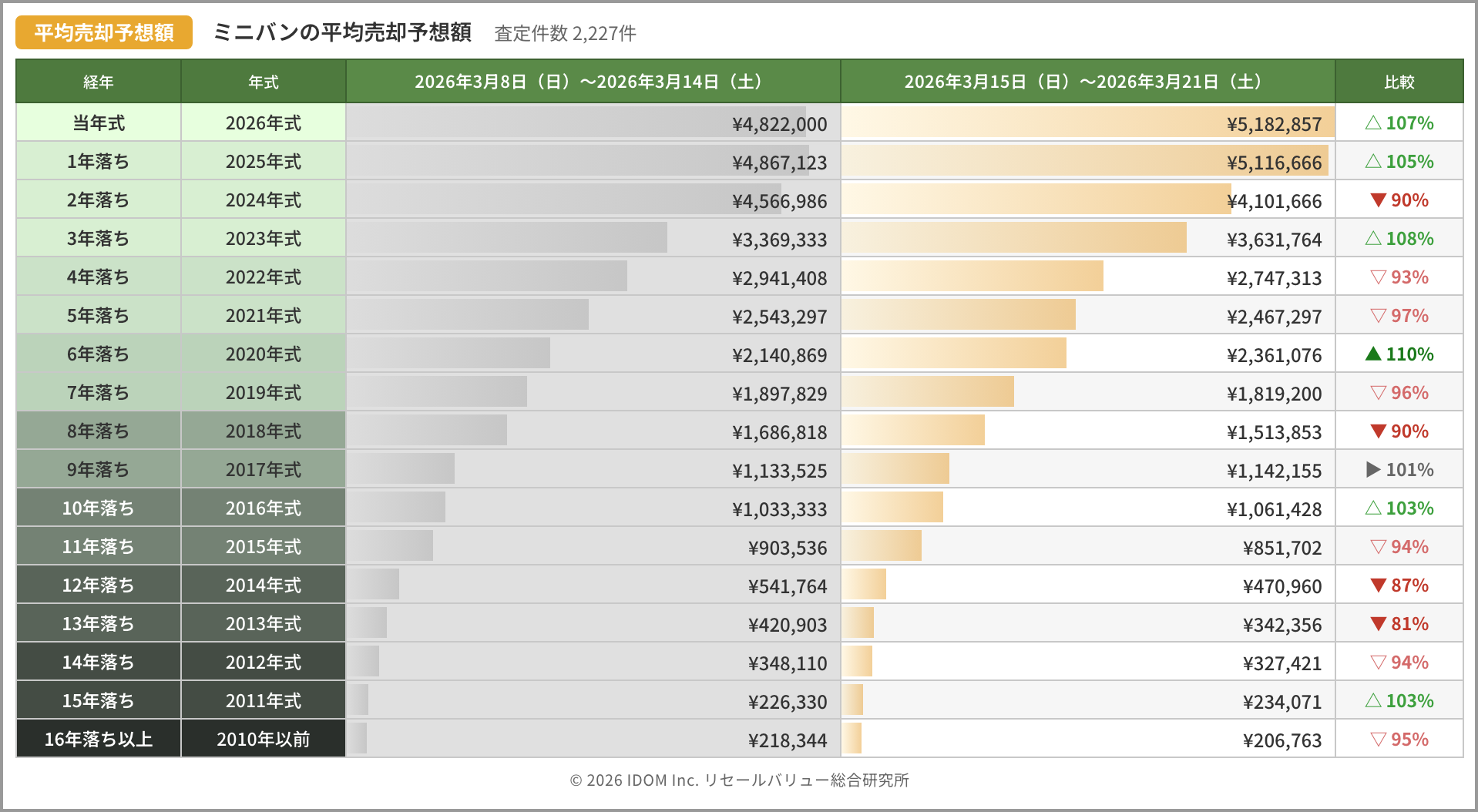 | ミニバンの平均売却予想額 | 2,227 件 | |||
