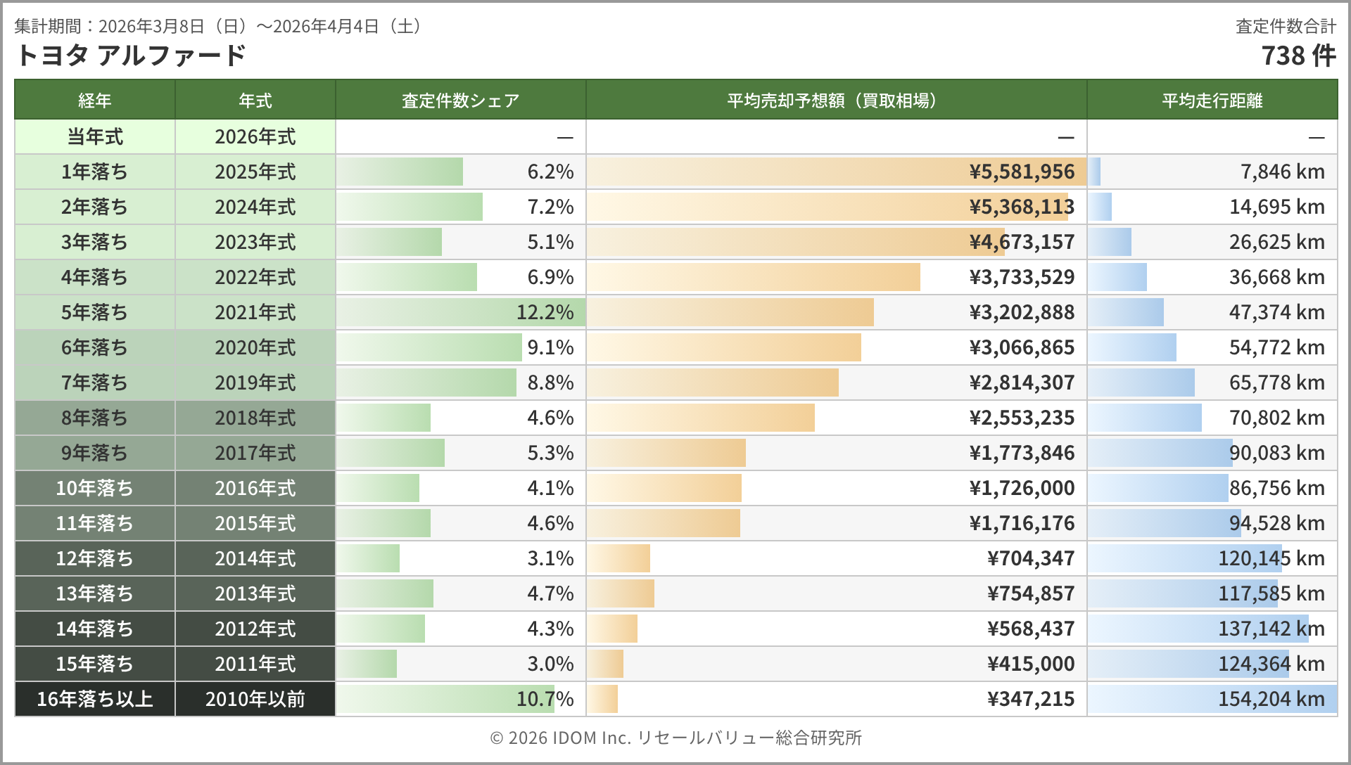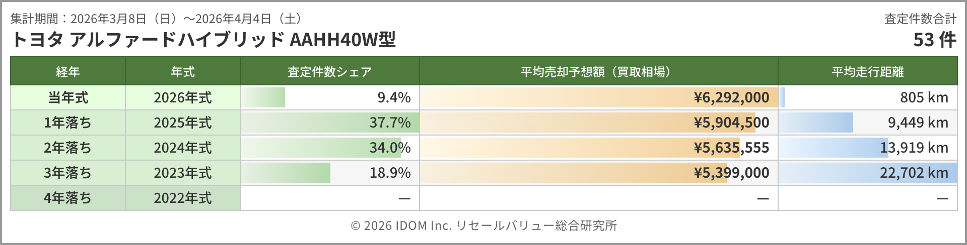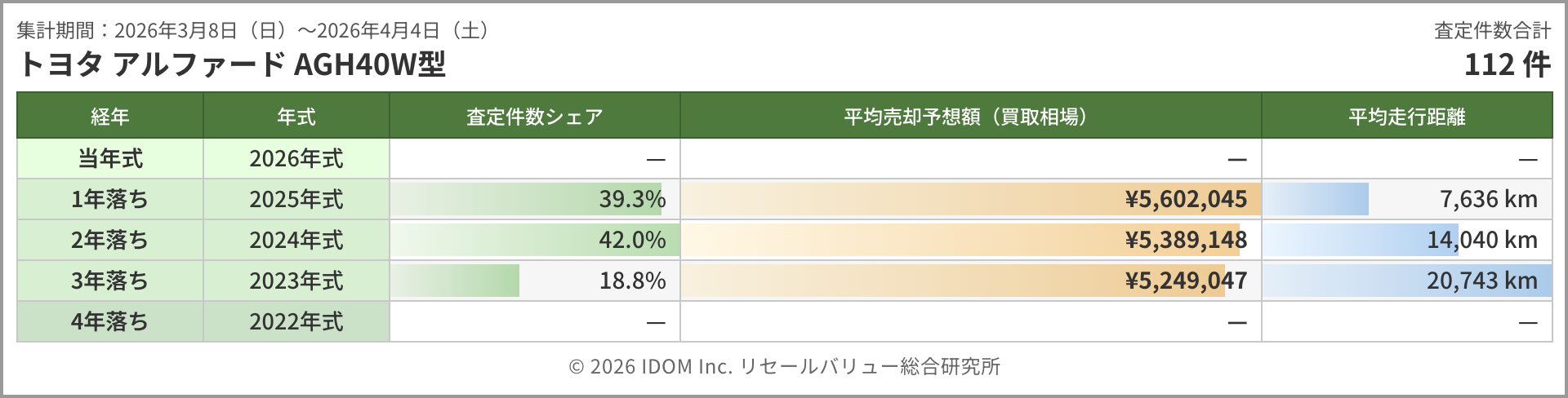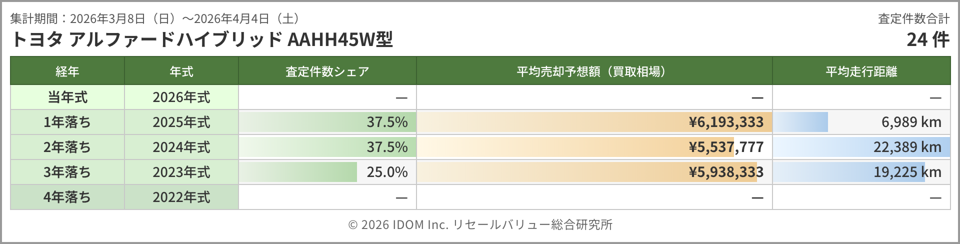 今週のアルファード相場 2026年4月4日(土)集計:トヨタ アルファードの売却予想額(買取相場)リセールバリュー速報