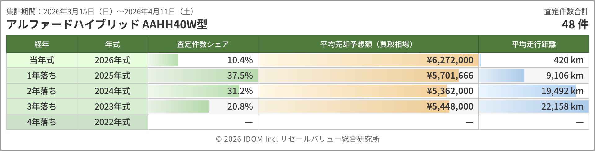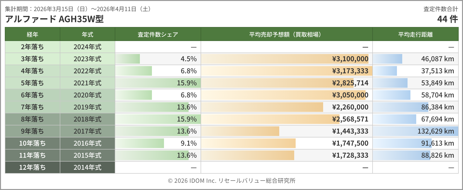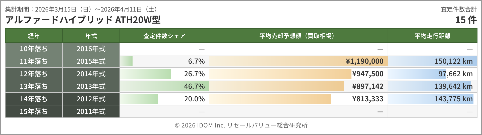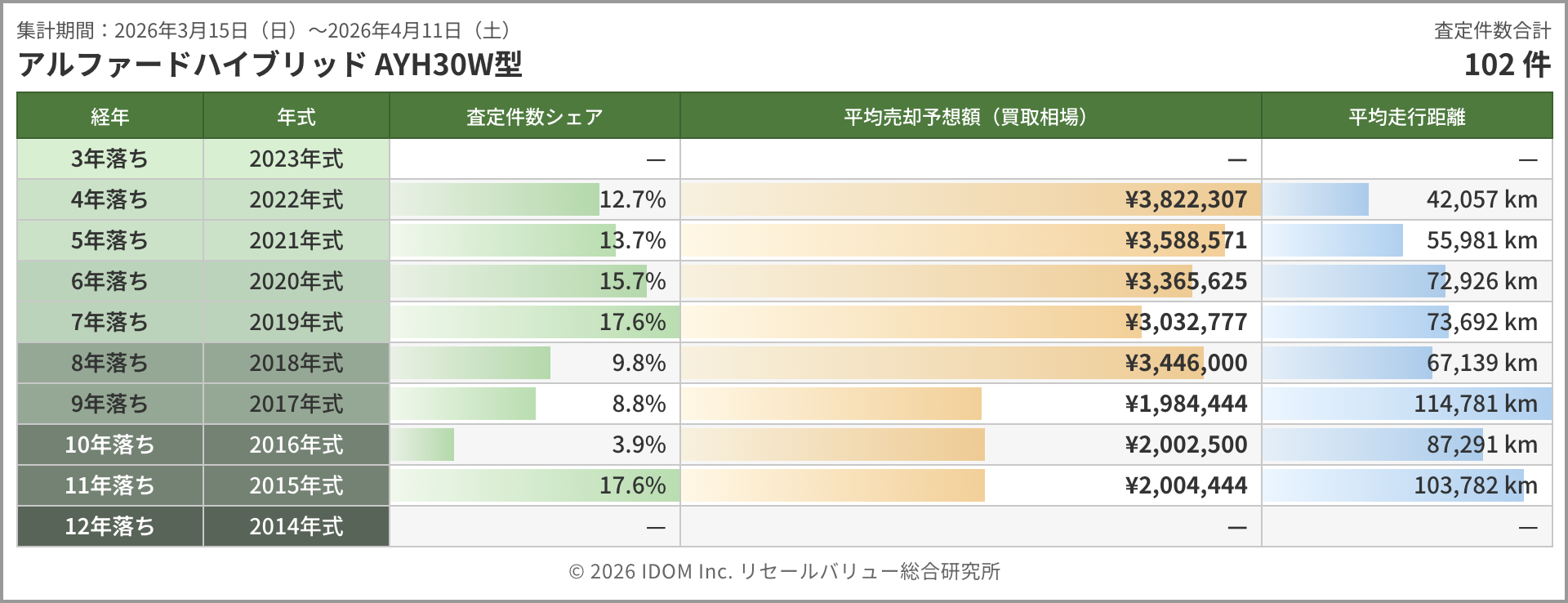 | 集計期間:2026年3月15日(日)〜2026年4月11日(土) | 査定件数合計 | |||